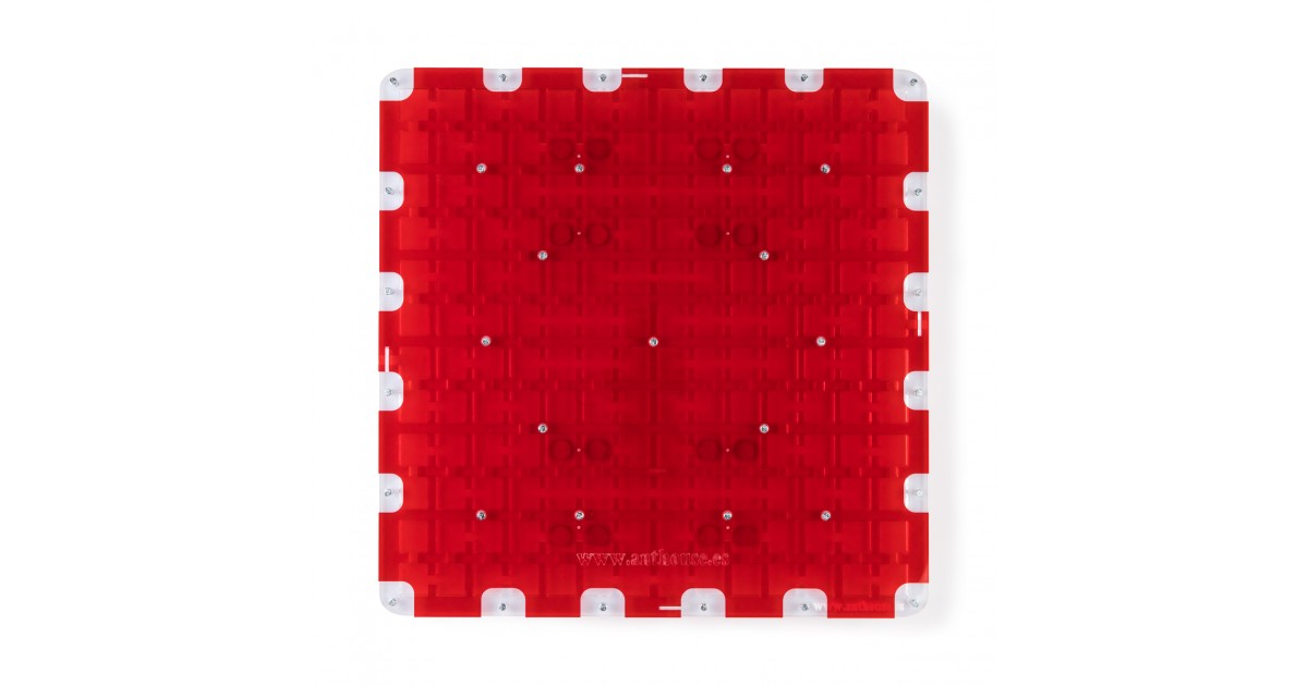 Ameisennest des Pilztyps aus Acryl mit den Maßen 50x50x1,5 cm, mit hoher Futterzone und einem Wasservorrat, um einen höheren Feuchtigkeitswert beizubehalten und eine bessere Sicht auf die Ameisen zu ermöglichen. Mit Gängen von 1,5 cm Höhe ist es perfekt für jede Spezies, sei es die Größte wie Camponotus oder die Kleinste wie Lasius.