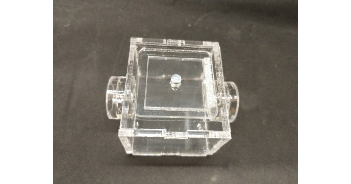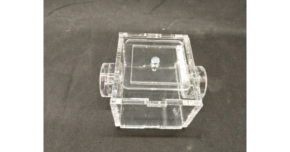 Es hat zwei Abdeckungen, eine große zur Erleichterung der Reinigung und eine kleinere, die die Ameisen füttert.
