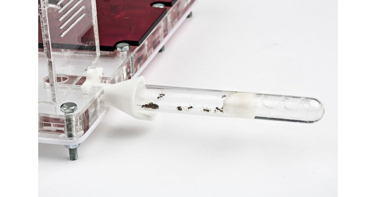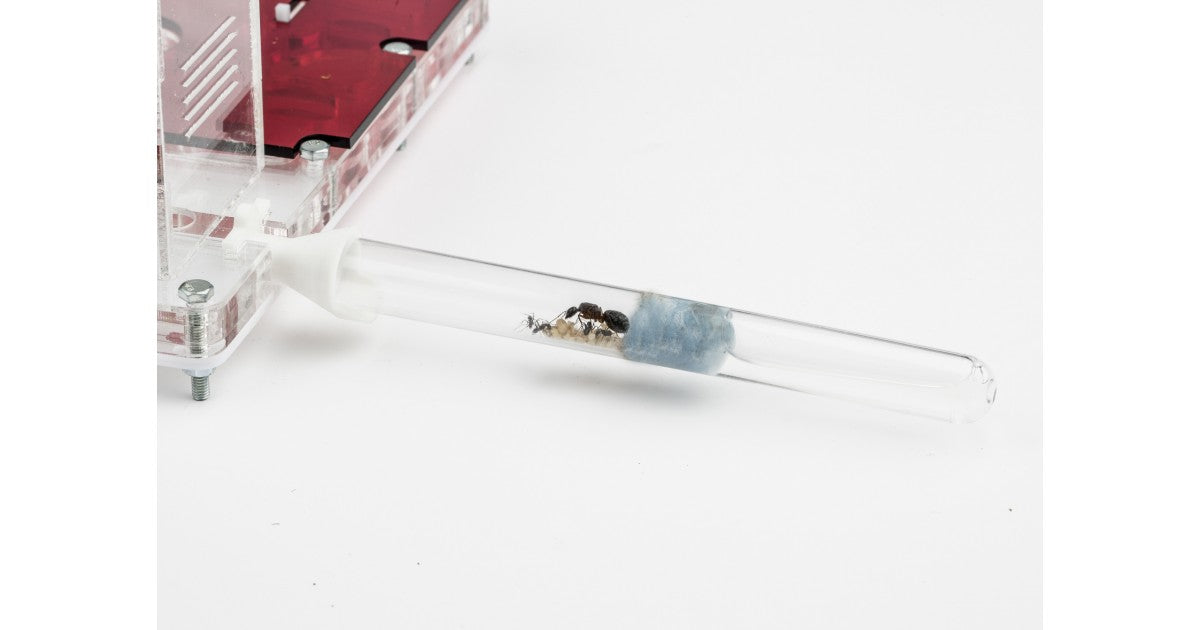 Enthält eine Öffnung, um das Ameisennest mit anderen oder Futterschachteln zu verbinden. Vergiss nicht, sie mit ein bisschen Watte oder Gummi-Stopfen von Anthouse mit den Maßen 9/6 mm, abzudecken.