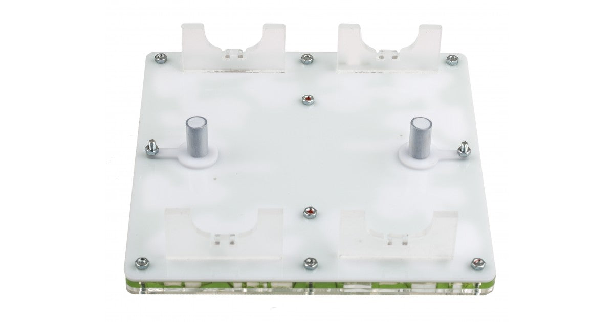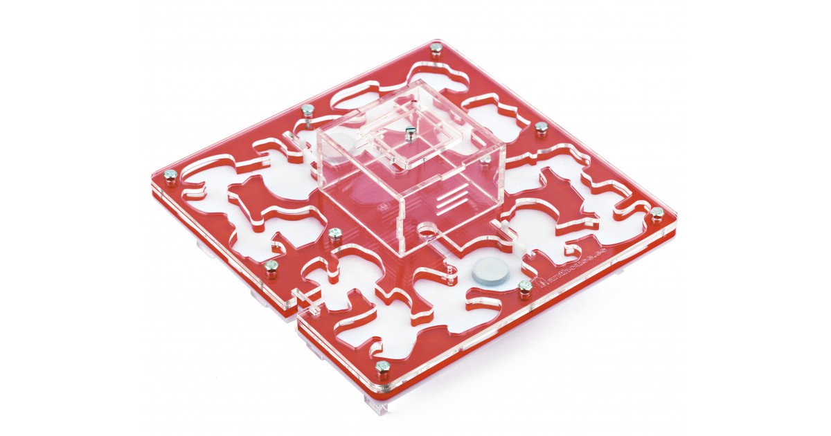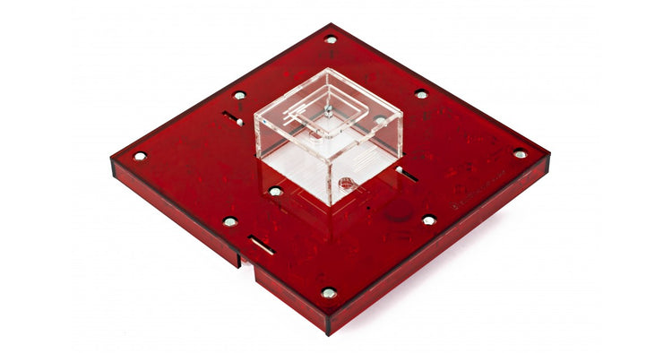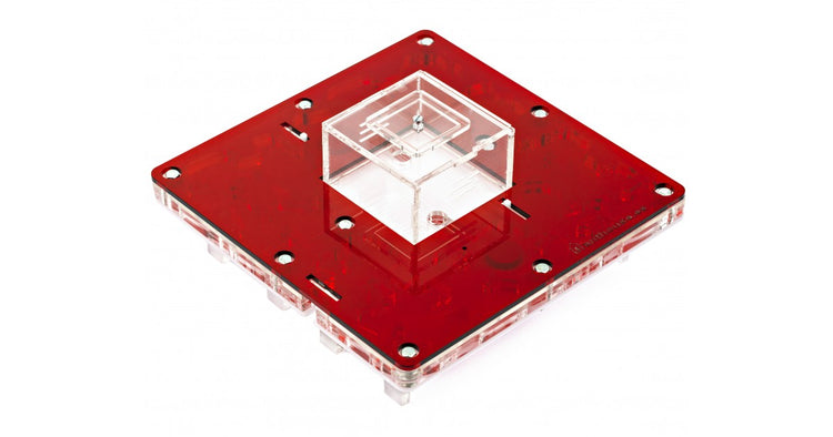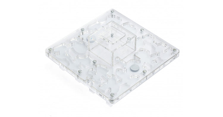 Ameisennest des Pilztyps aus Acryl mit den Maßen 20x20x1,5 cm, mit zentraler Futterzone und einem Wasservorrat, um einen höheren Feuchtigkeitswert beizubehalten und eine bessere Sicht auf die Ameisen zu ermöglichen. Mit Gängen von 1,5 cm Höhe ist es perfekt für jede Spezies, sei es die Größte wie Camponotus oder die Kleinste wie Lasius. Geteilt in zwei voneinander unabhängige Bereiche, ist es möglich, das Ameisennest an die Koloniegröße anzupassen.