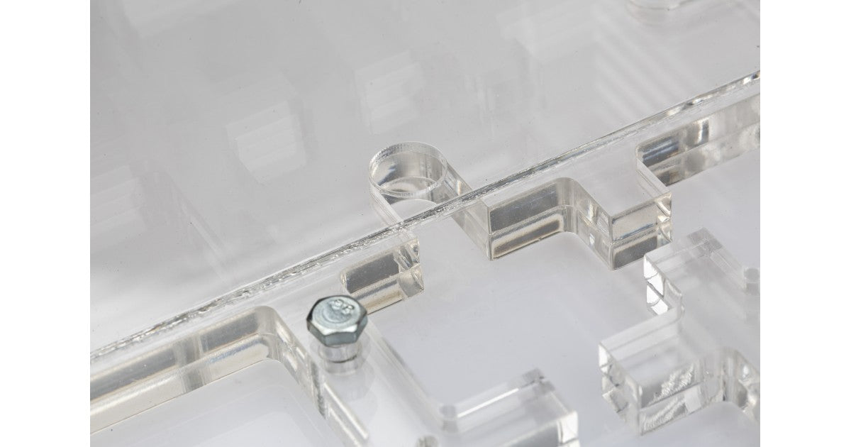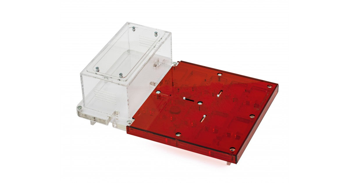 Ameisennest des Pilztyps aus Acryl mit den Maßen 30x20x1,5 cm, mit hoher Futterzone und einem Wasservorrat, um einen höheren Feuchtigkeitswert beizubehalten und eine bessere Sicht auf die Ameisen zu ermöglichen. Mit Gängen von 1,5 cm Höhe ist es perfekt für jede Spezies, sei es die Größte wie Camponotus oder die Kleinste wie Lasius.