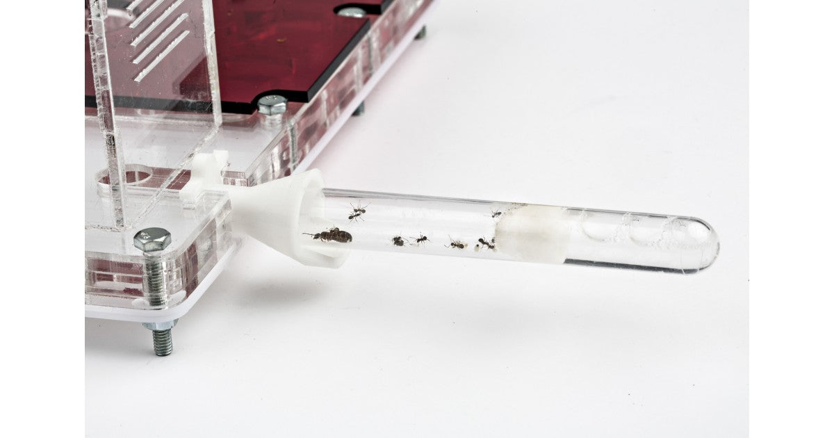 Enthält eine Öffnung, um das Ameisennest mit anderen oder Futterschachteln zu verbinden. Vergiss nicht, sie mit ein bisschen Watte oder Gummi-Stopfen von Anthouse mit den Maßen 9/6 mm, abzudecken.
