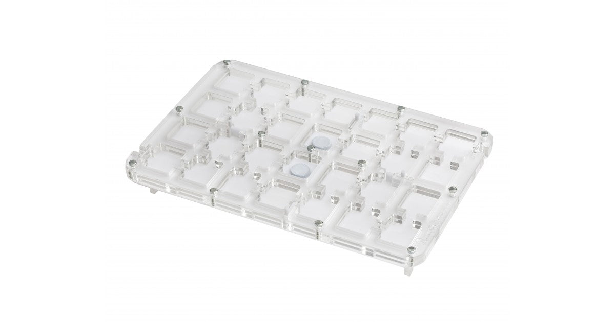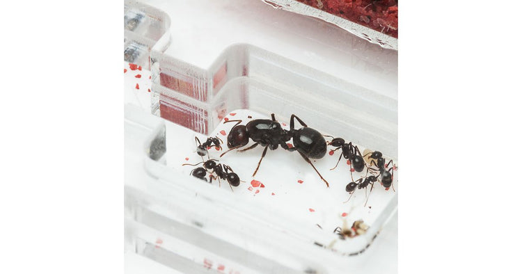 Ameisennest des Pilztyps aus Acryl mit den Maßen 30x20x1,5 cm, mit hoher Futterzone und einem Wasservorrat, um einen höheren Feuchtigkeitswert beizubehalten und eine bessere Sicht auf die Ameisen zu ermöglichen. Mit Gängen von 1,5 cm Höhe ist es perfekt für jede Spezies, sei es die Größte wie Camponotus oder die Kleinste wie Lasius.