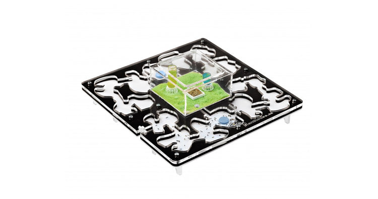 Ameisennest des Pilztyps aus Acryl mit den Maßen 30x30x1,5 cm, mit zentraler Futterzone und einem Wasservorrat, um einen höheren Feuchtigkeitswert beizubehalten und eine bessere Sicht auf die Ameisen zu ermöglichen. Mit Gängen von 1,5 cm Höhe ist es perfekt für jede Spezies, sei es die Größte wie Camponotus oder die Kleinste wie Lasius. Geteilt in zwei voneinander unabhängige Bereiche,...
