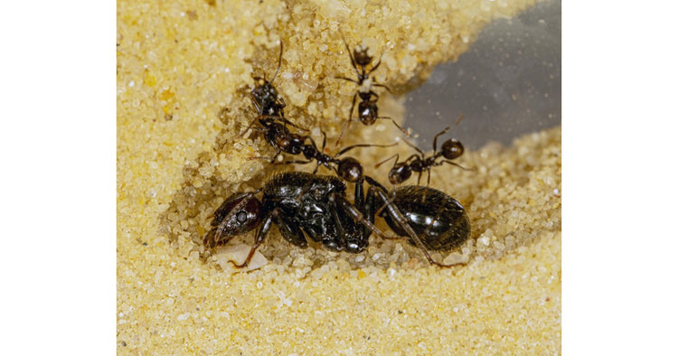 Es ist sehr wichtig, das Futter so nah wie möglich an die Ameisen heran zu bringen. Deshalb zögere nicht, es so nah es geht an die Öffnung oder an die Zone, in der sich die Ameisen aufhalten, zu legen. Vermeide dabei immer, den Sand zu verschmutzen. Eine Art, um zu überprüfen, dass die Ameisen essen, ist, zu schauen, ob sie einen angeschwollenen Gaster (Hinterteil) haben, da sie Nahrung in einem Sozialmagen als Reserve speichern.