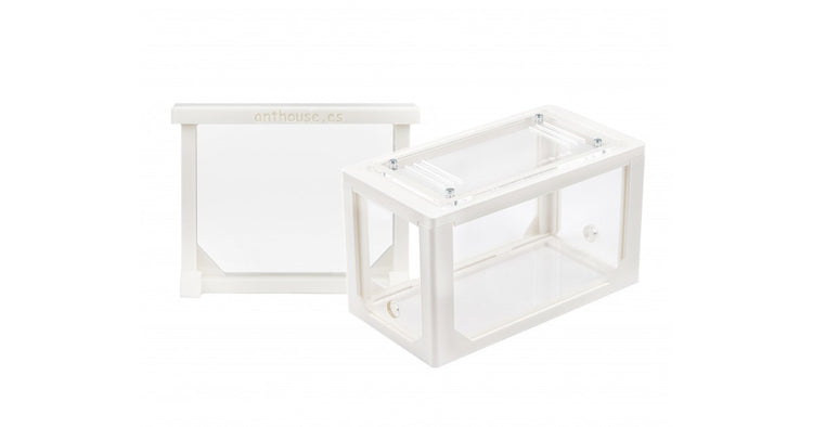 Bechreibung: Die Ameisenfarm Sandwich Mini- Acryl besteht aus einem Acryl- Sandwich und einer Futterschachtel aus demselben Material. Das Sandwich verbindet man über ein Röhrchen mit der Futterschachtel, die von den Ameisen sowohl als Futterzone, als auch als Müllablage verwendet wird.